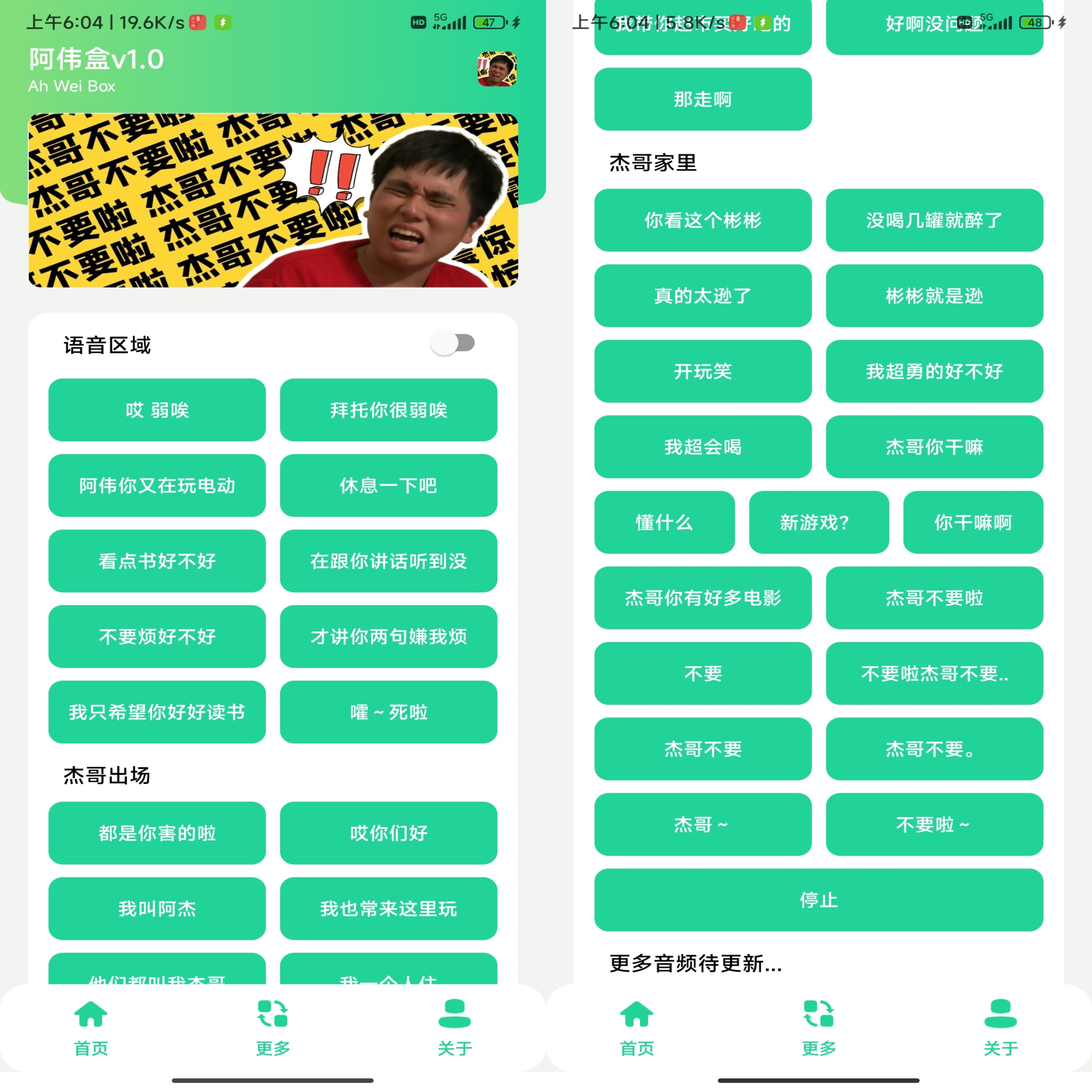 一款趣味恶搞语音包app,里面汇集了阿伟语音包,啊~ 杰哥不要。
