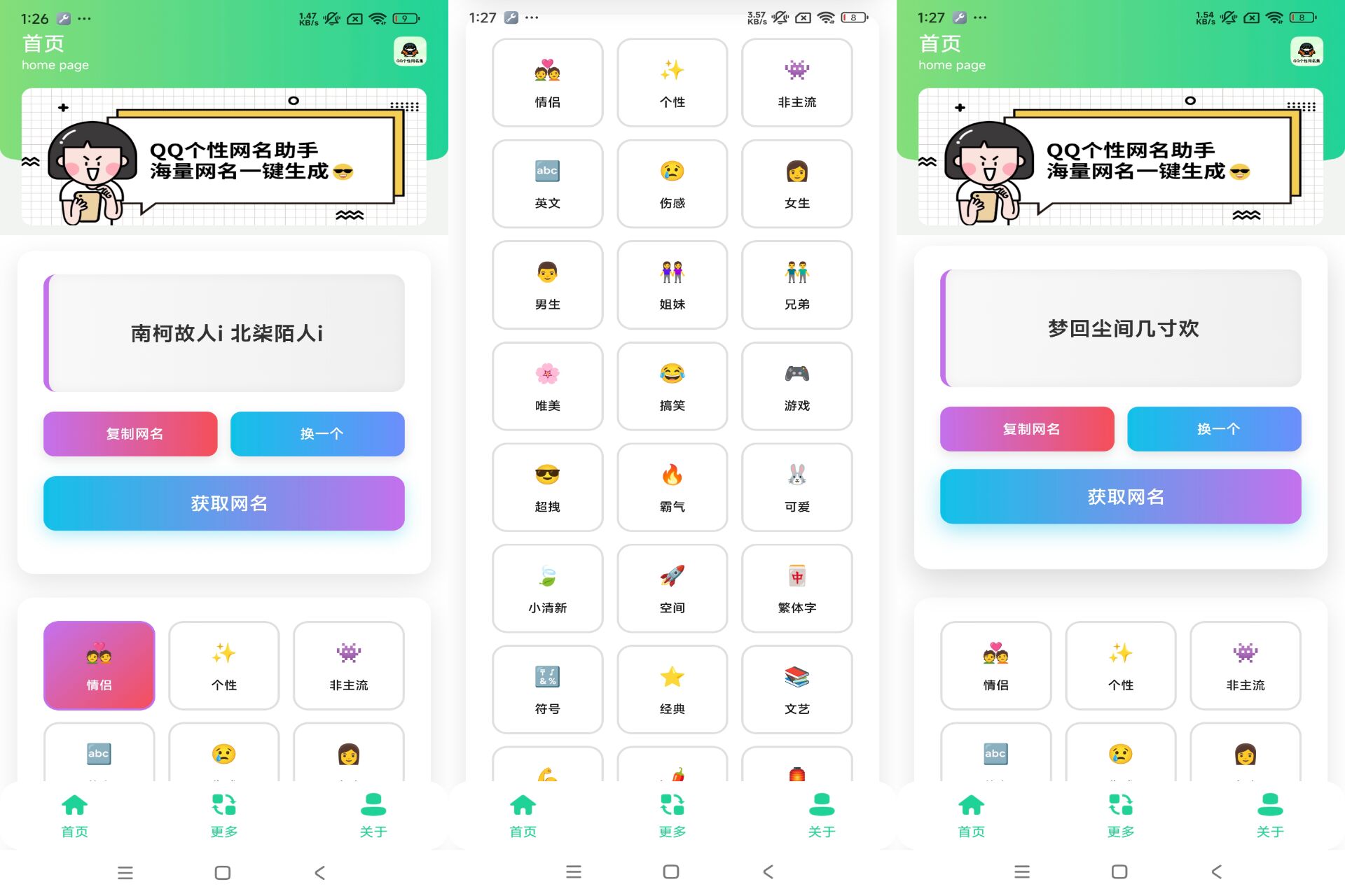 一款网名大全助手App,专属网名,彰显个性! 提供各种类型的网名,让你找到符合自己喜好和风格的网名,展现你的独特魅力。 界面简洁,浏览方便,是你的网名选择好帮手!