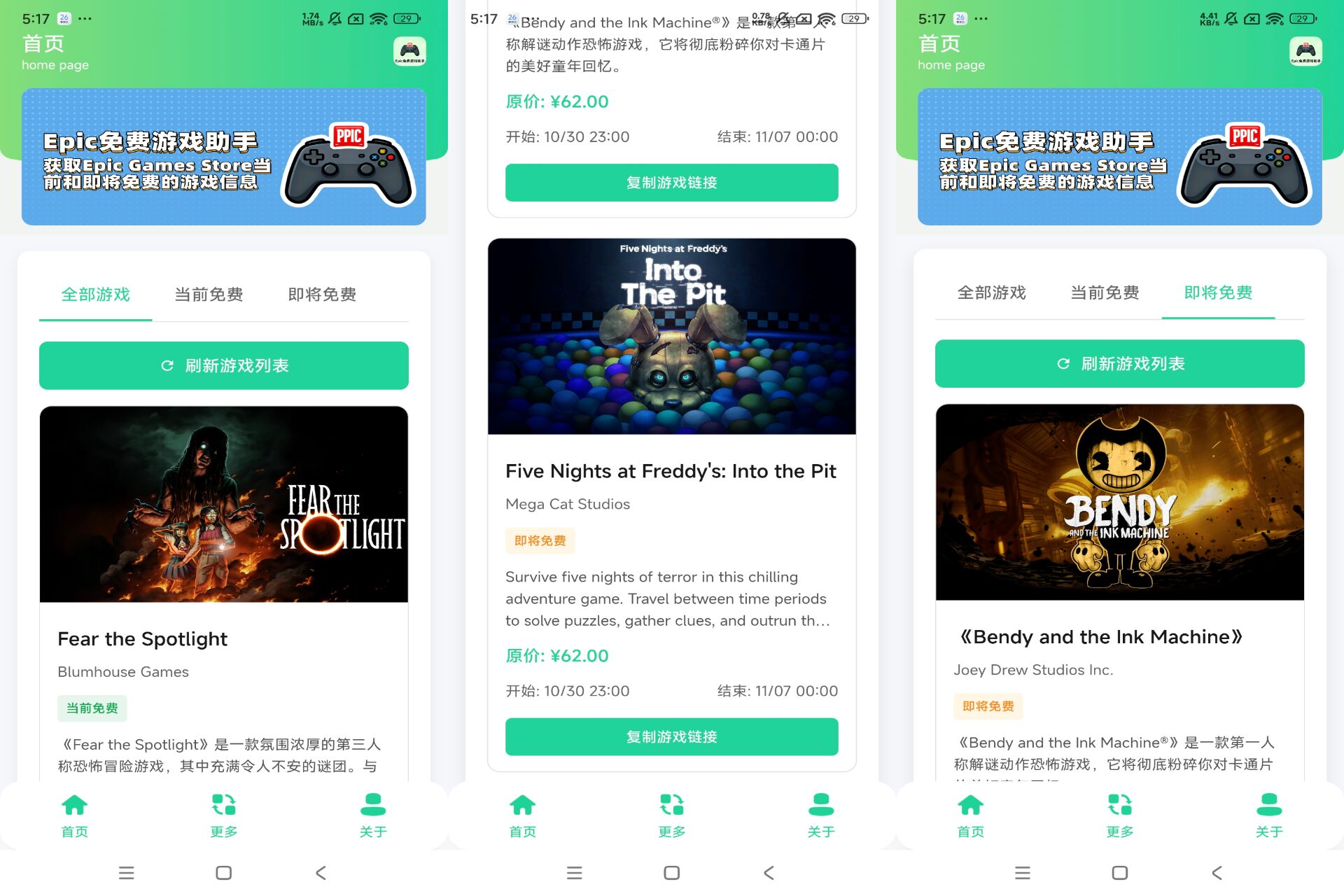 一款Epic免费游戏助手App,免费游戏,一手掌握!提供Epic平台免费游戏领取、游戏资讯、活动预告等功能,让你不错过任何免费游戏,畅玩游戏世界。界面简洁,操作便捷,是你的游戏玩家好帮手!