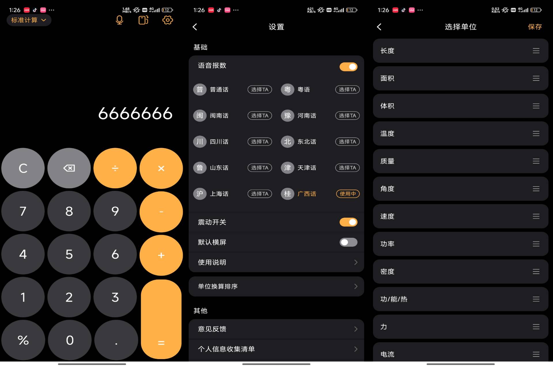 一款手机工具App,方言播报,计算更有趣!在通用计算器的基础上,加入了方言语音播报功能,计算结果会以你选择的方言读出,让计算过程更具趣味性和亲切感。界面友好,操作简便,是你的特色计算助手!(解锁VIP功能)